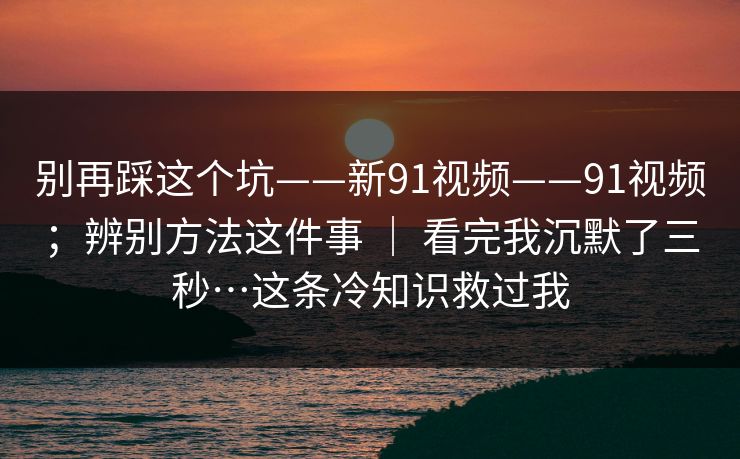 别再踩这个坑——新91视频——91视频;辨别方法这件事 | 看完我沉默了三秒…这条冷知识救过我