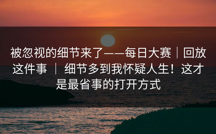 被忽视的细节来了——每日大赛|回放这件事 | 细节多到我怀疑人生!这才是最省事的打开方式